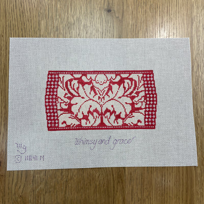 Wg11841N Royal Damask Needle Case - Red & Ivory