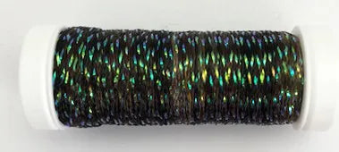 Shimmer Floss is a braided combination of rayon and metallic fibers approximately 1/8" wide. It can be laid flat or simply stitched. Use as a single thread in lengths of 24" or less. 10m spool