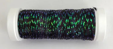 Shimmer Floss is a braided combination of rayon and metallic fibers approximately 1/8" wide. It can be laid flat or simply stitched. Use as a single thread in lengths of 24" or less. 10m spool