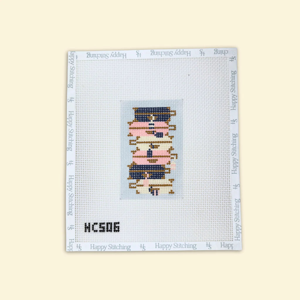 Stacked suitcases, bold hues, and lively lines — this one turns travel nostalgia into something you can stitch and carry. Feel the charm of classic journeys come alive under your needle.